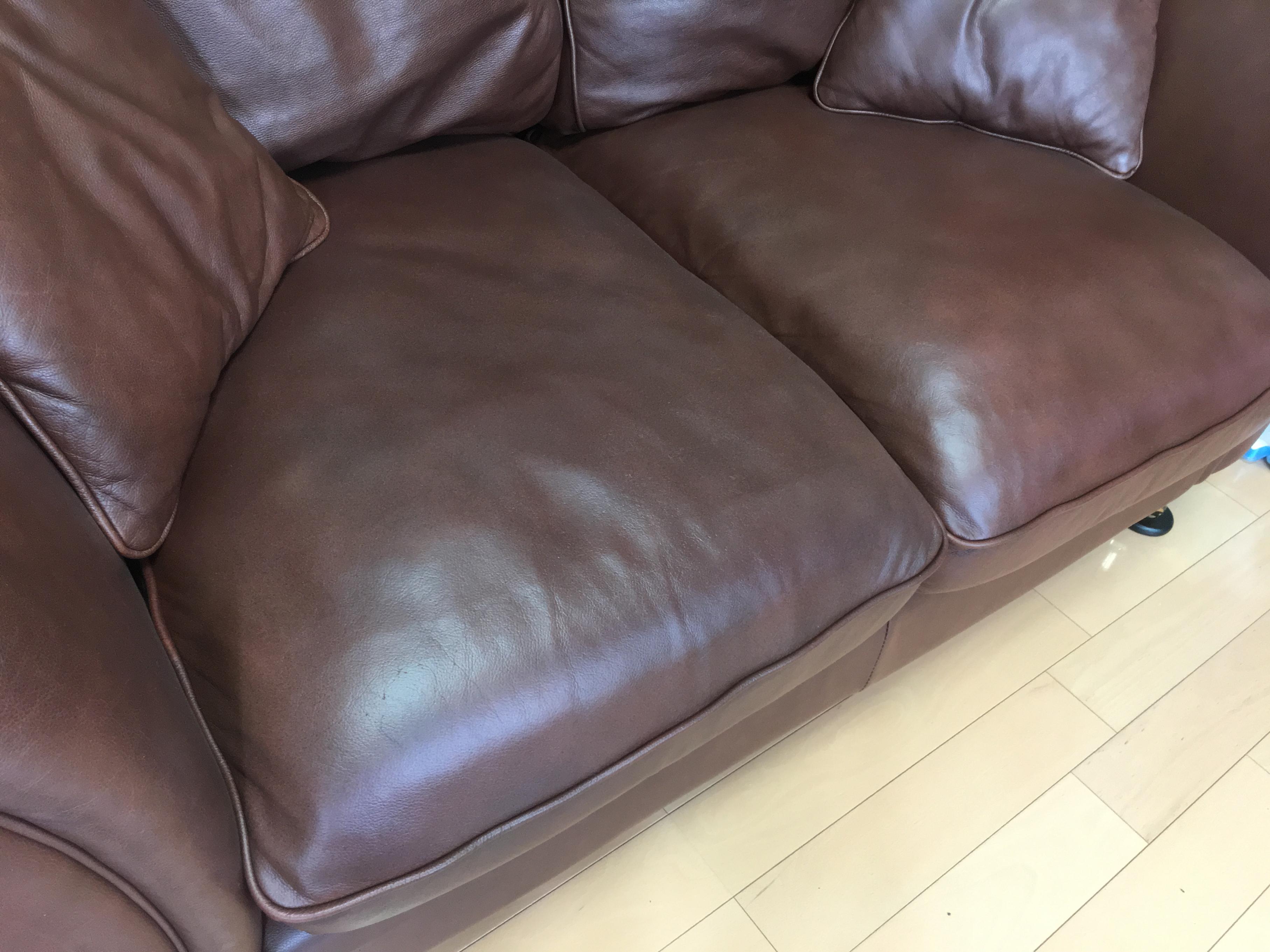 2人掛け本革ソファ座面の擦れリペアご依頼