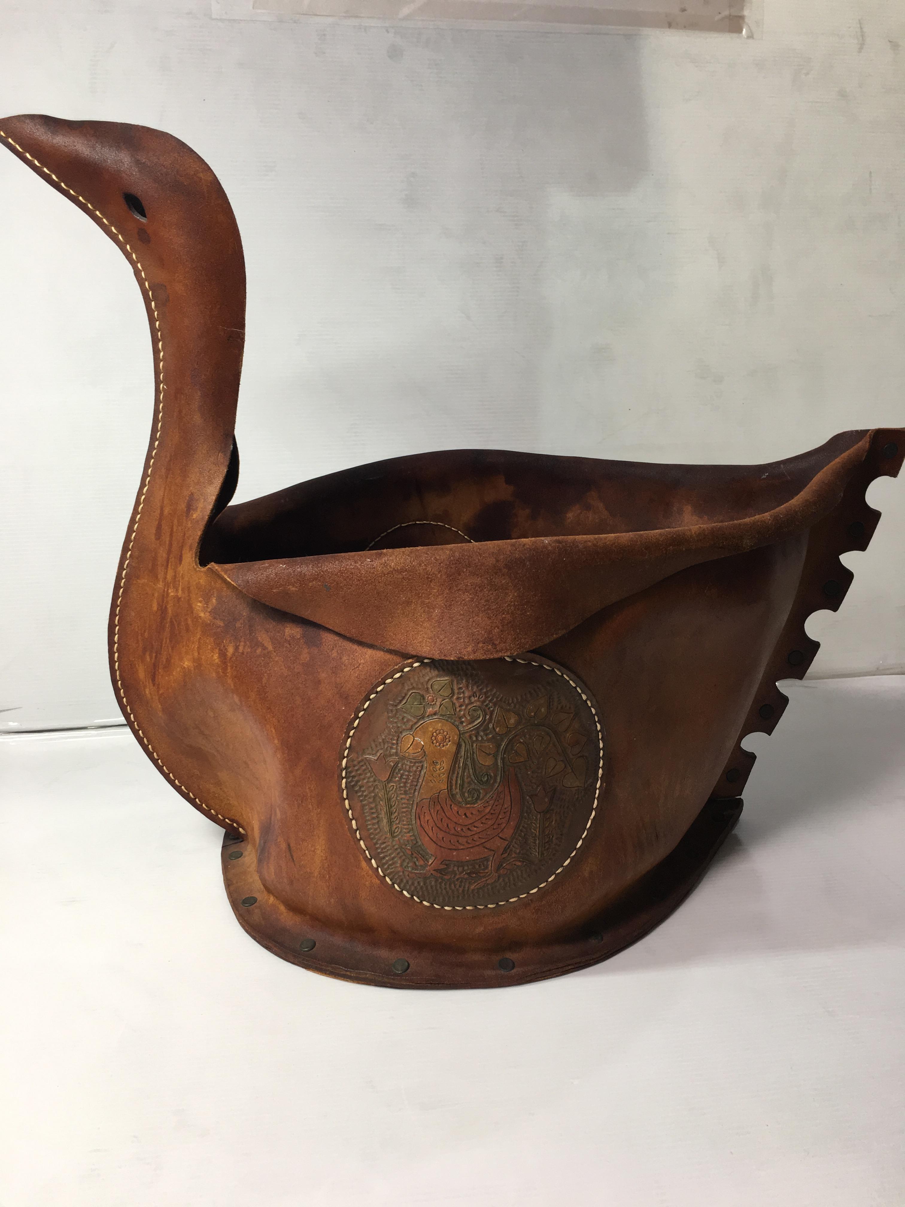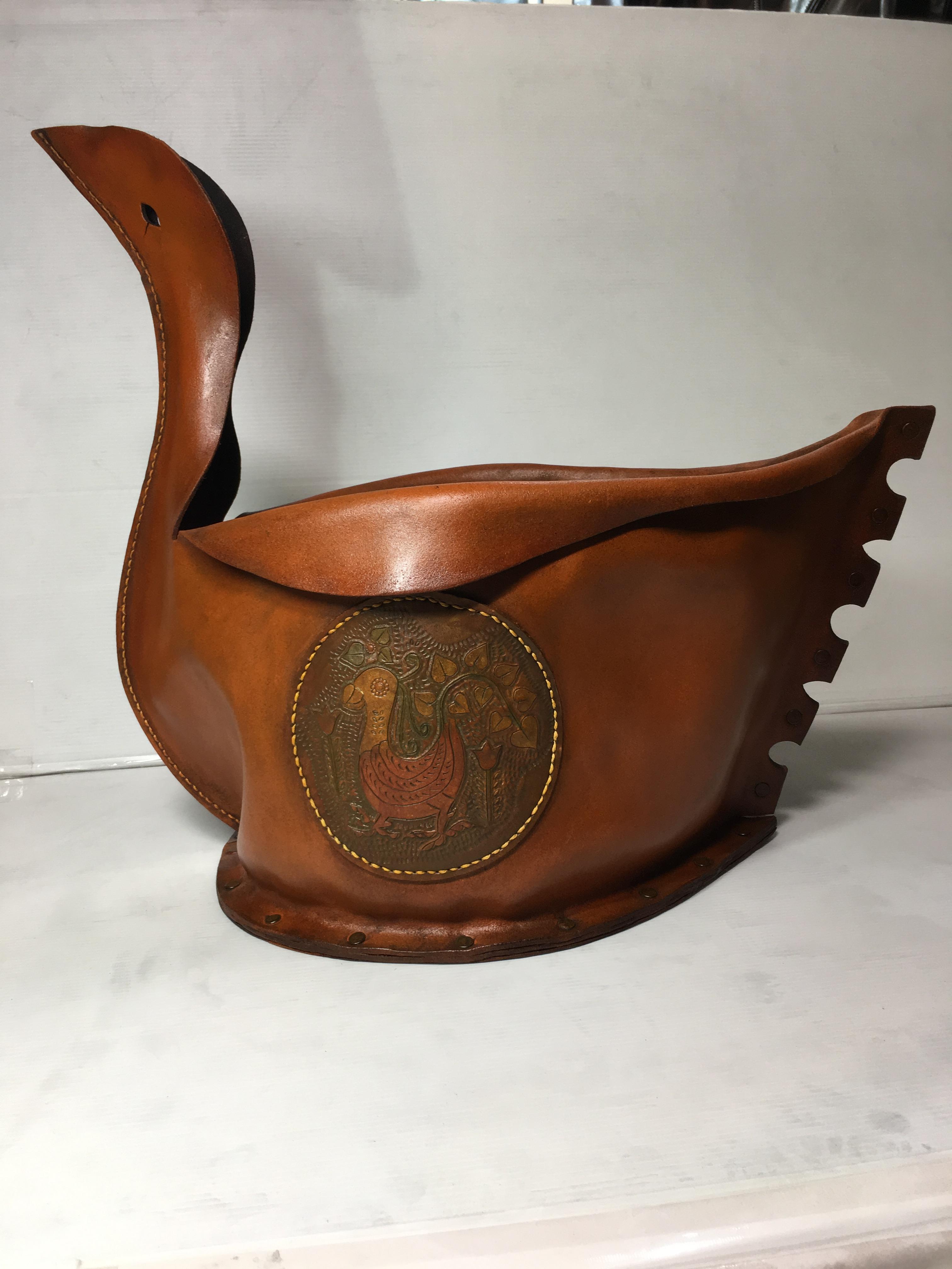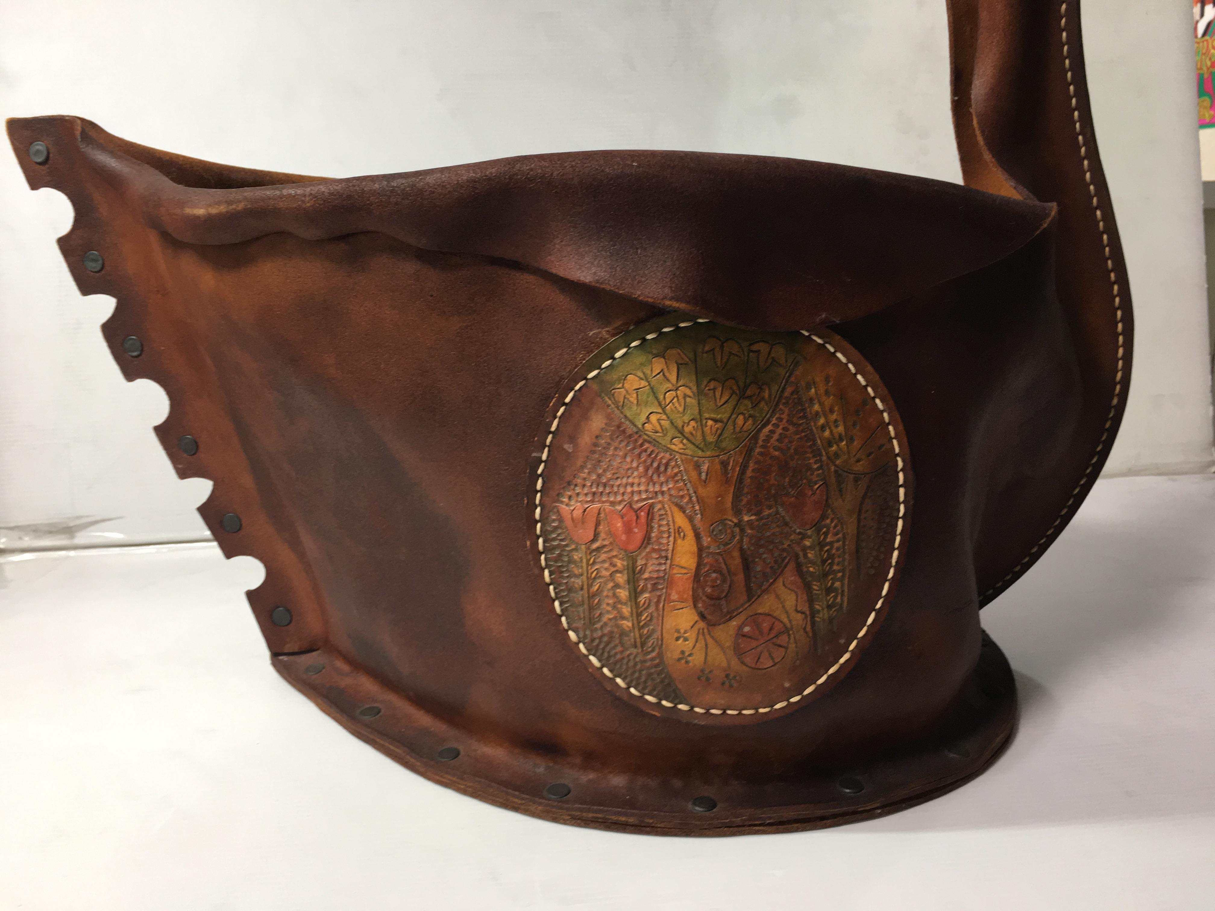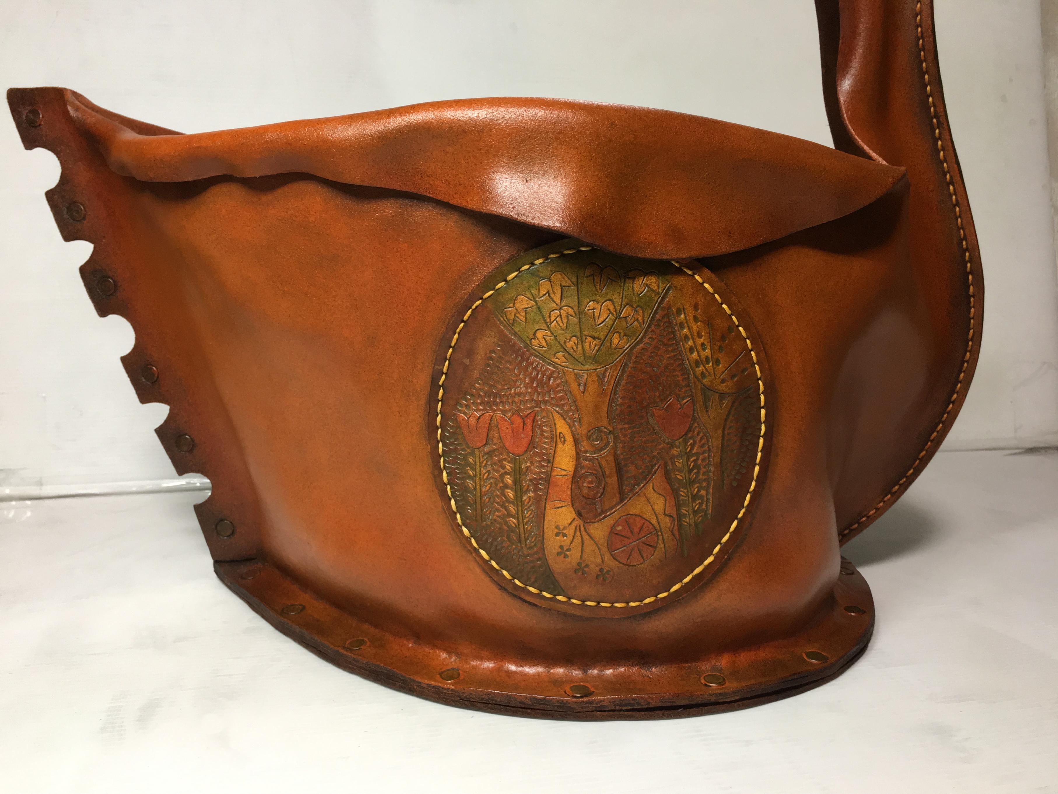 革製のマガジンラック色の変色、シミの修復。風合いを損ねない様にヴィンテージレザー風に仕上げ。