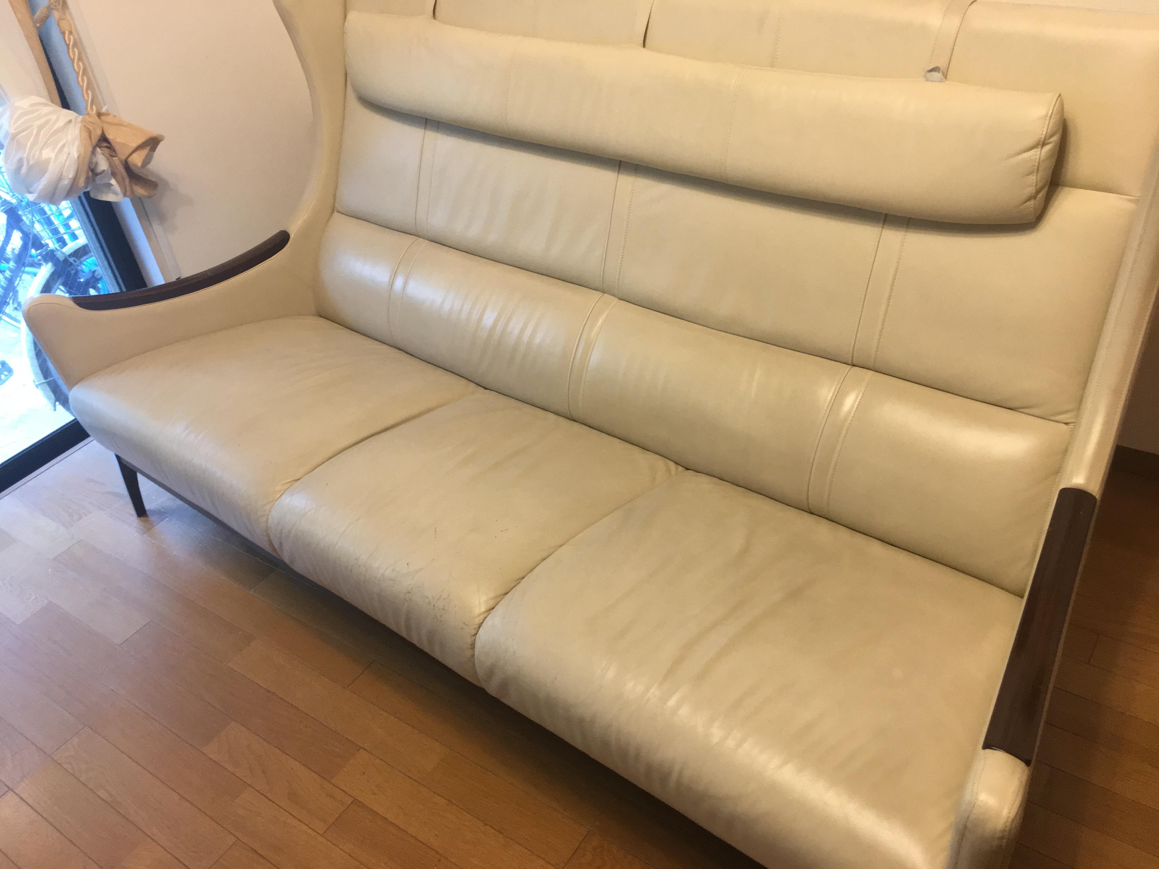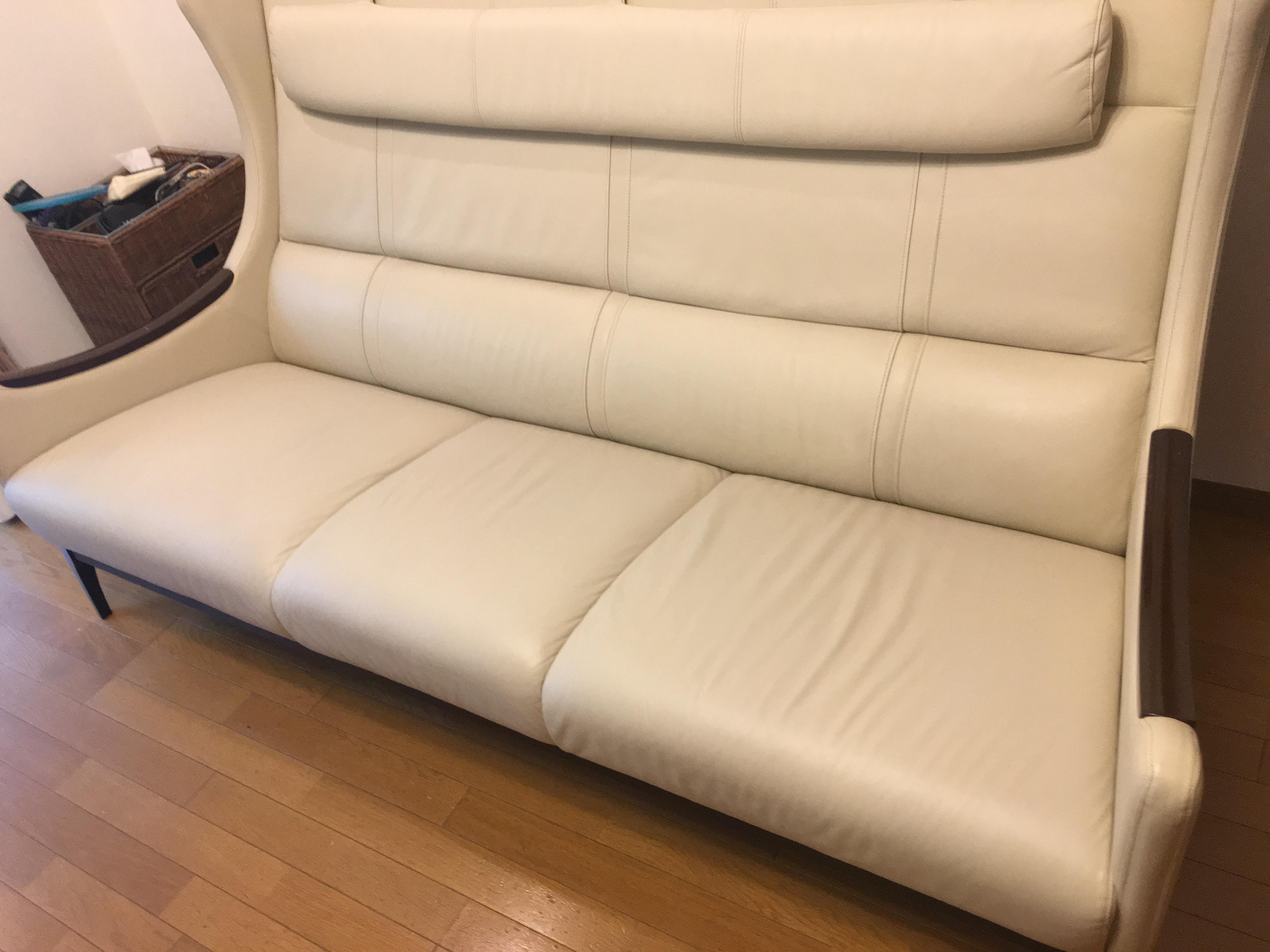 3人掛けレザーソファ クリーニング・補修ご依頼