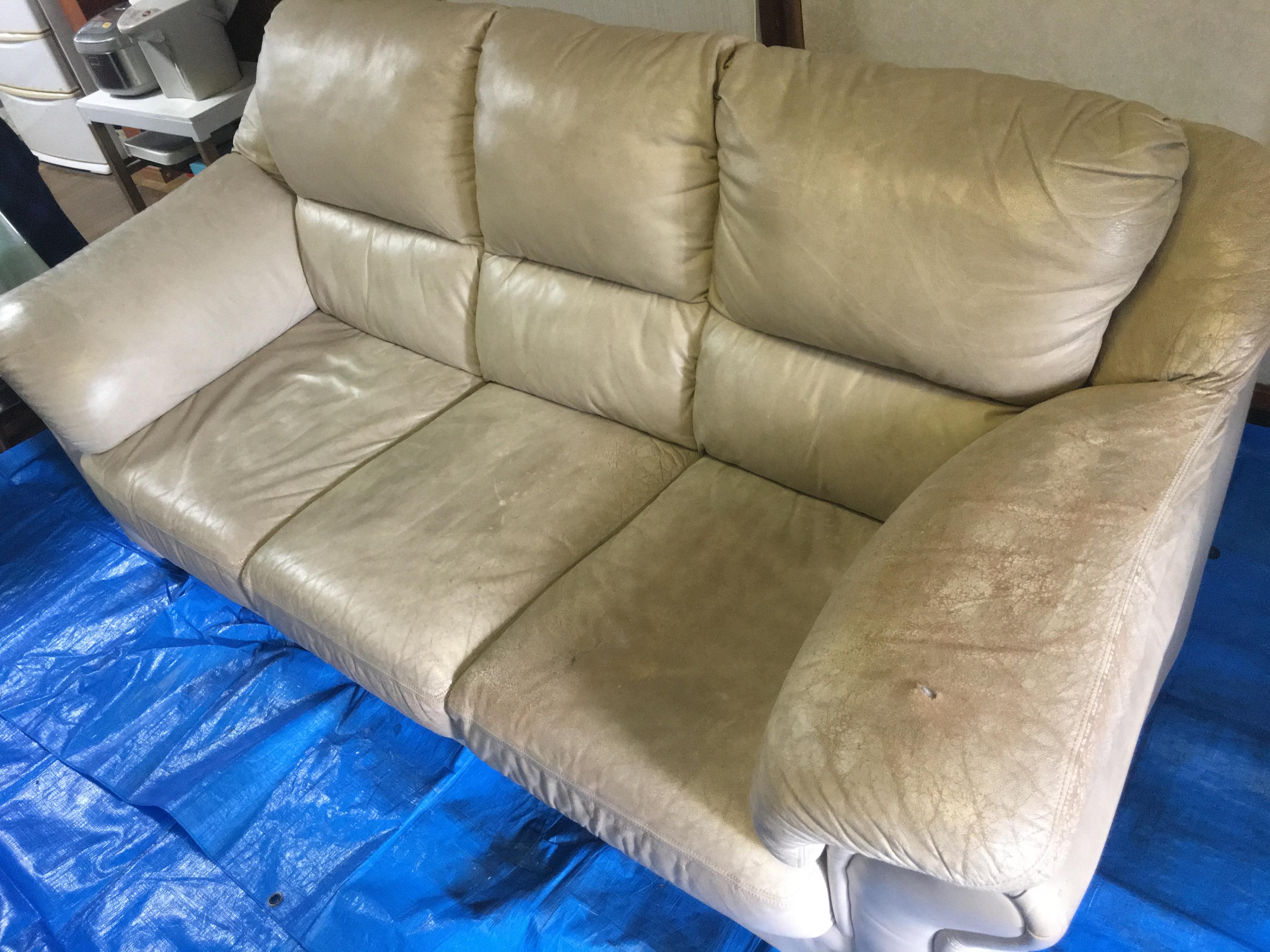 本革ソファ破れ、劣化、汚れの修繕ご依頼 |