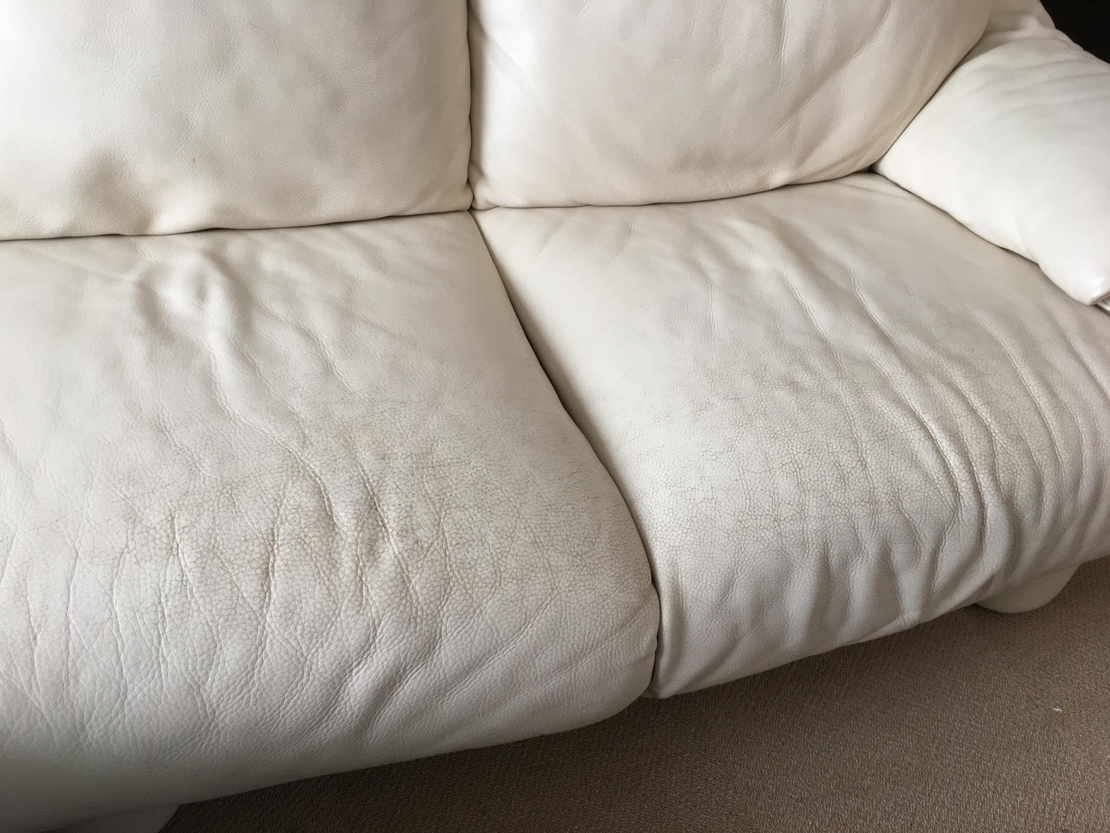 アイボリー色のソファクリーニング、座面修理のご依頼 |