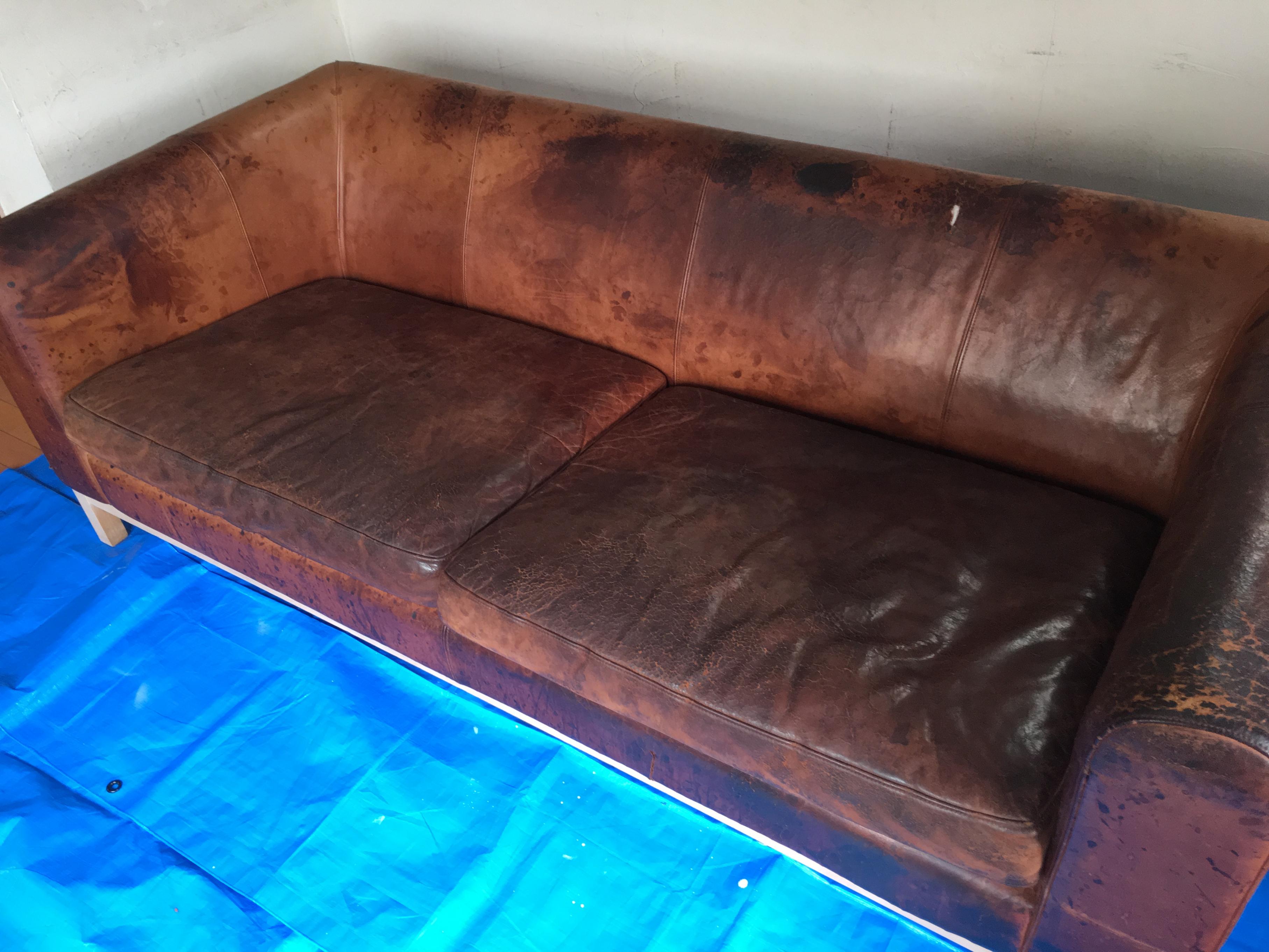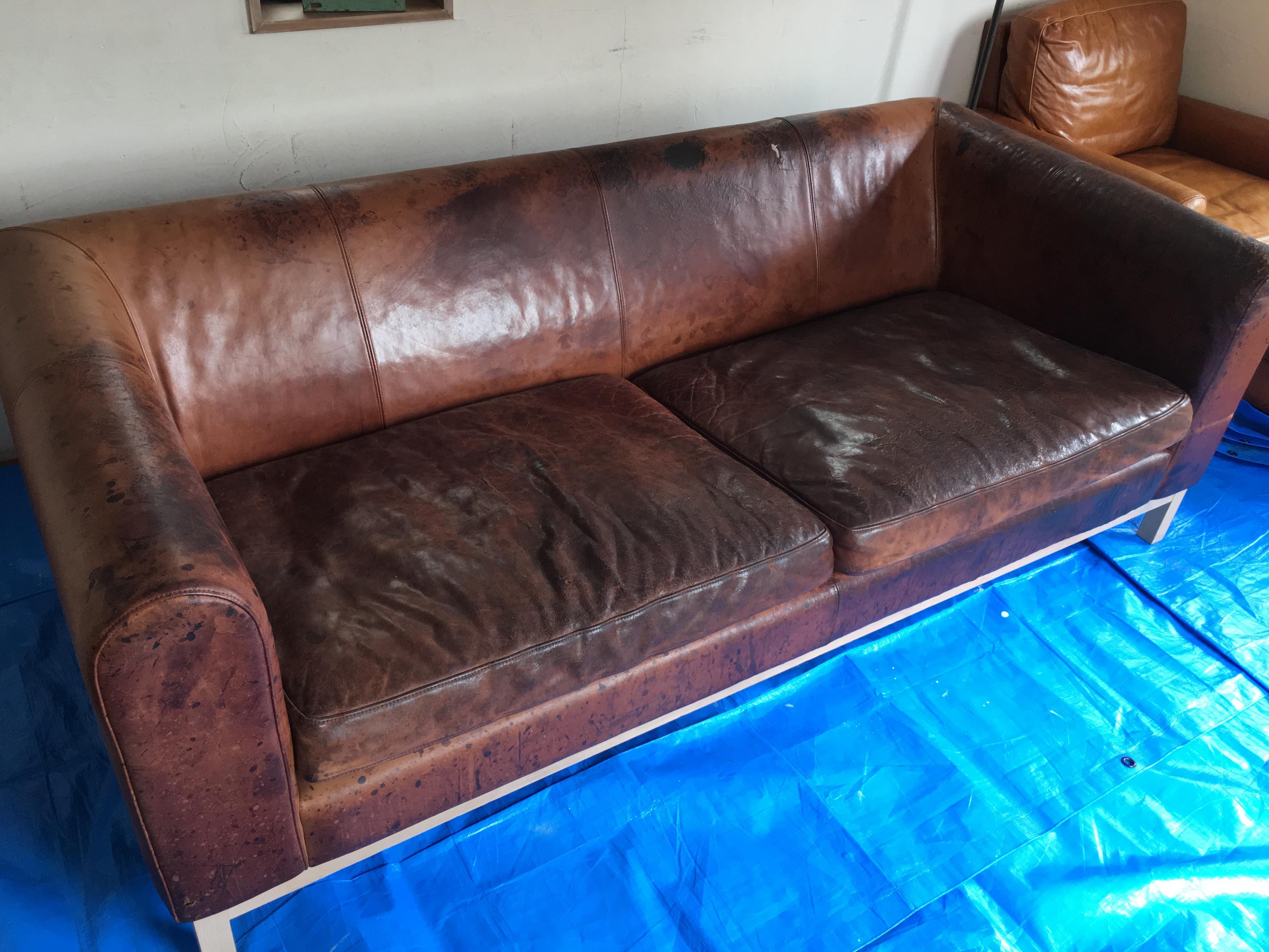 オイルレザーのソファ劣化、シミ改善のご依頼 |