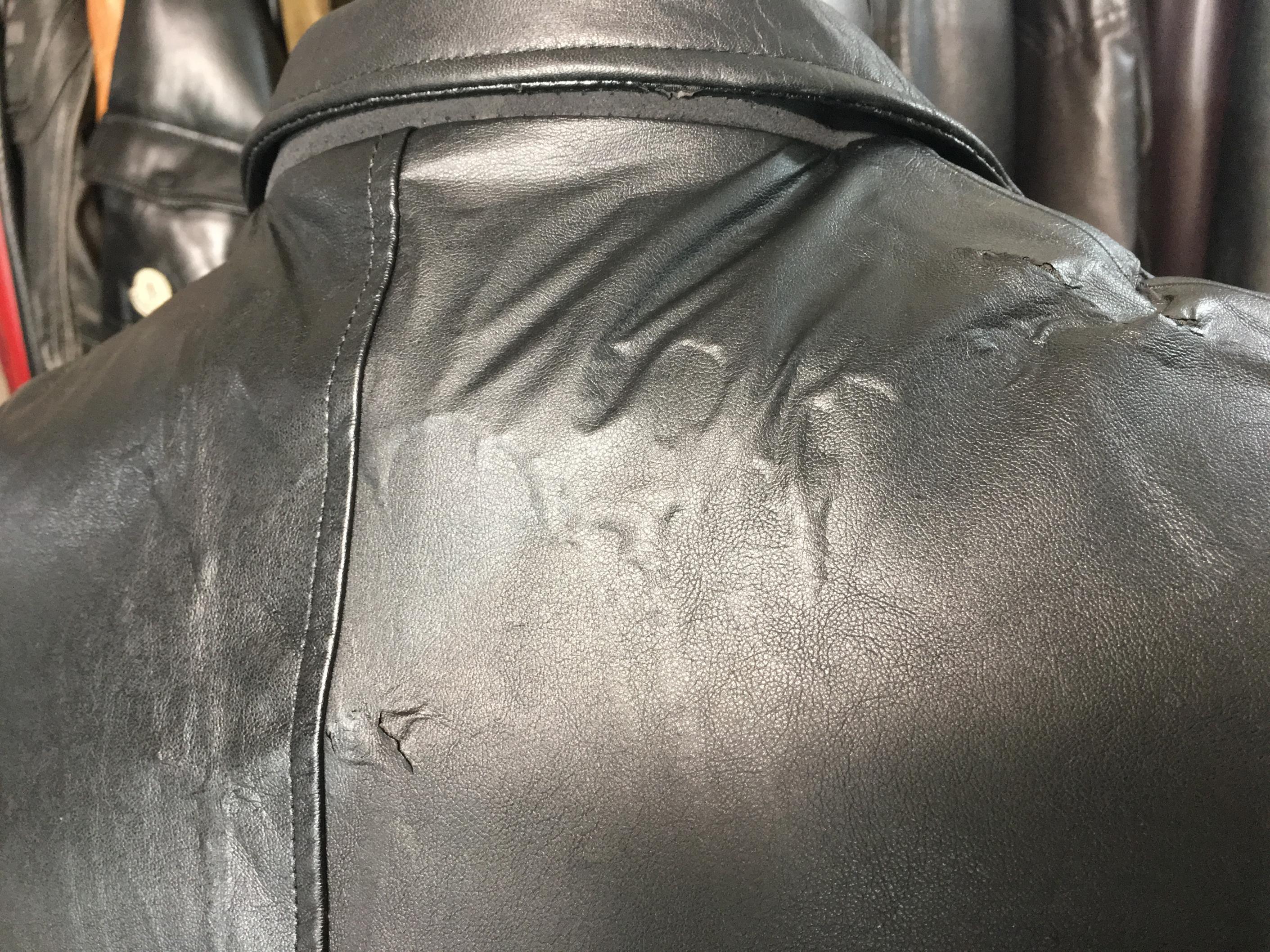![]() ![]() 【川崎市麻生区のお客様よりご依頼】 合成皮革のジャケットを本革に交換・張り替えのご依頼。 合成皮革は劣化が進行すると 下地の織布と表面の加工面が分離して、更に劣化すると表面が剥がれてきます。