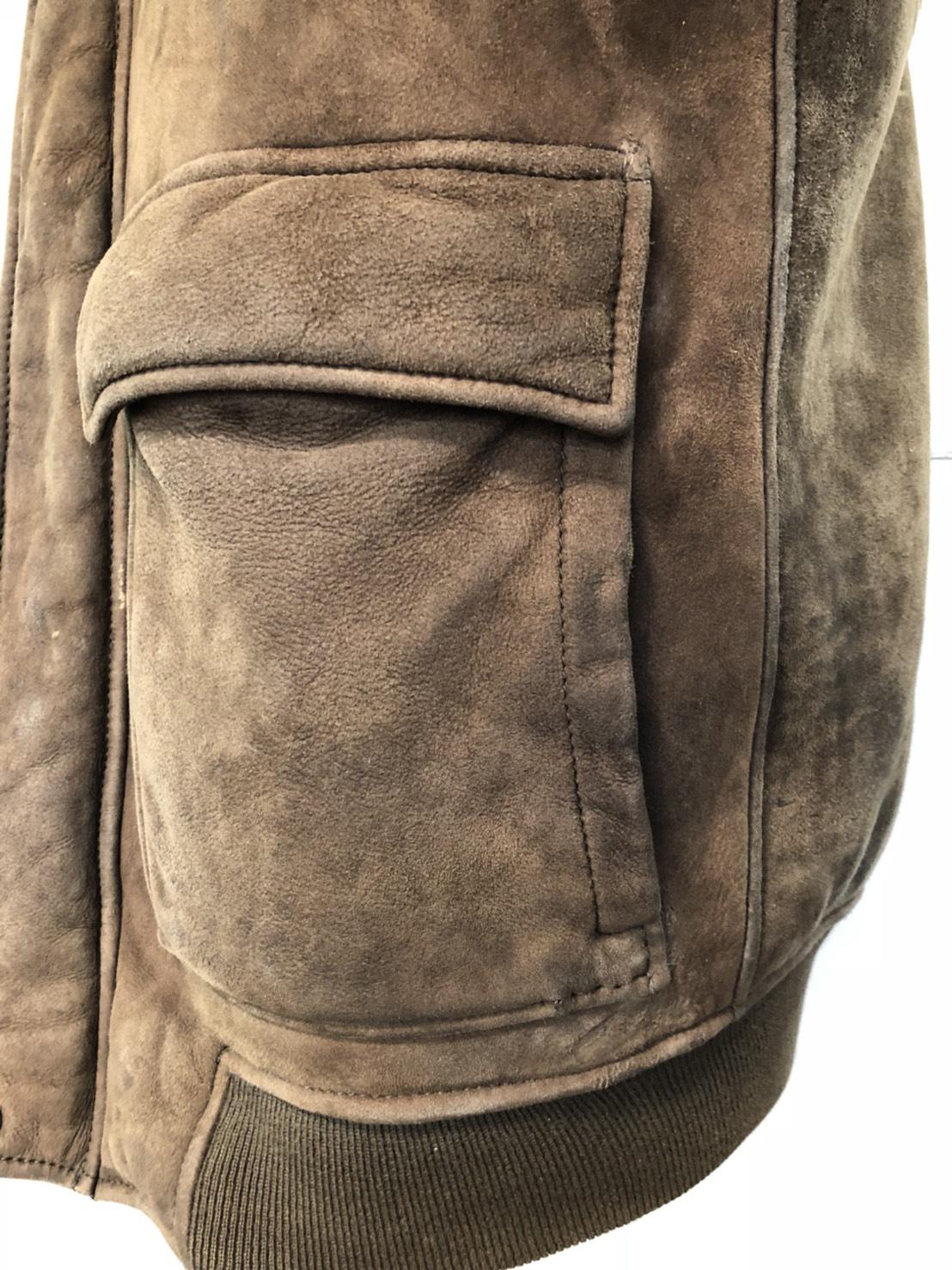 ![]() ![]() 【神奈川県葉山町のお客様よりご依頼】 シープスキン革ジャン フロントポケット脇の破れ補修。裏地ボアの破れ付近は一度毛を削ぎ落し、破れラインに沿って革パッチで接着補強。縫製箇所は更に縫い直してあります。 |
