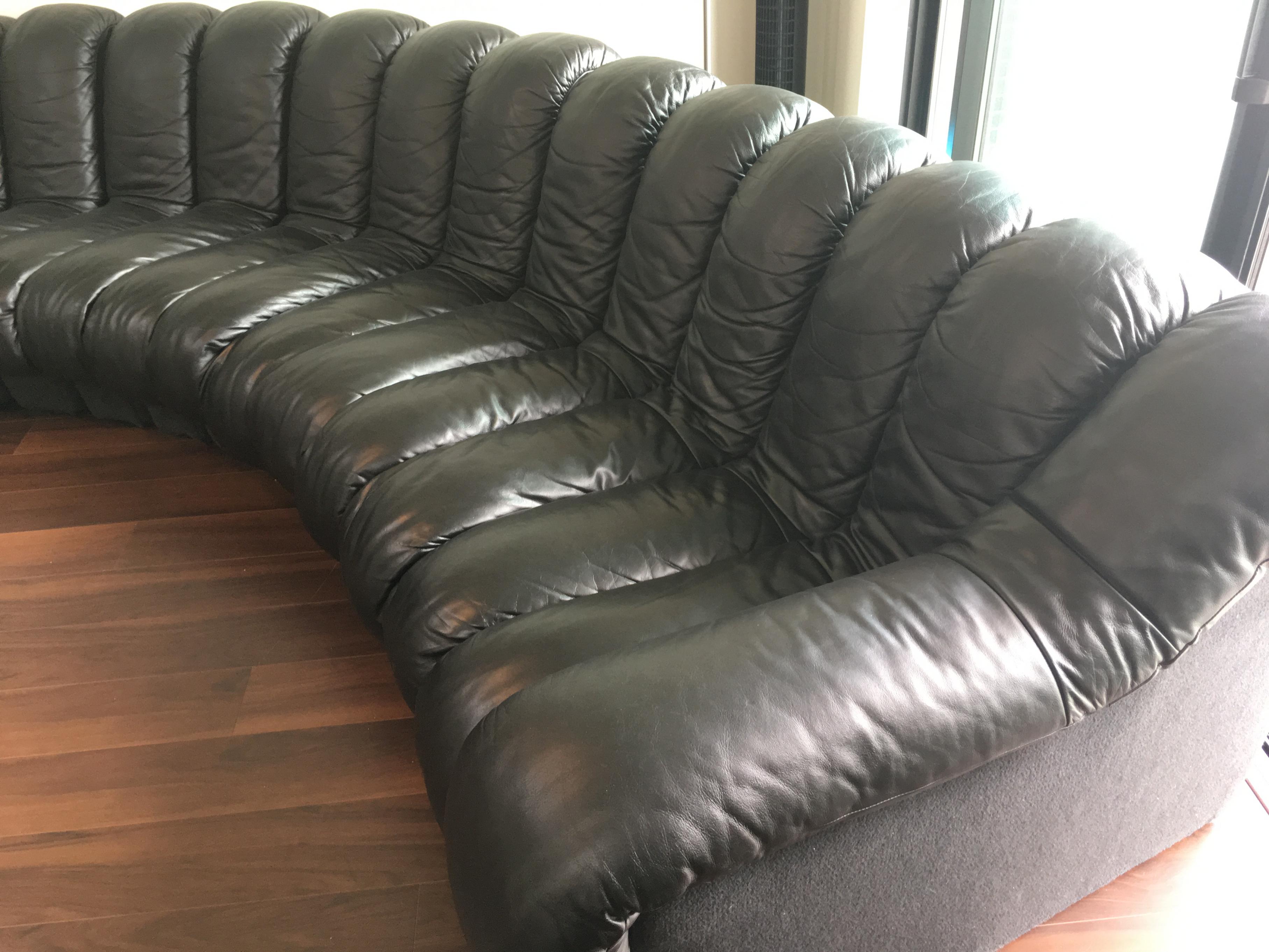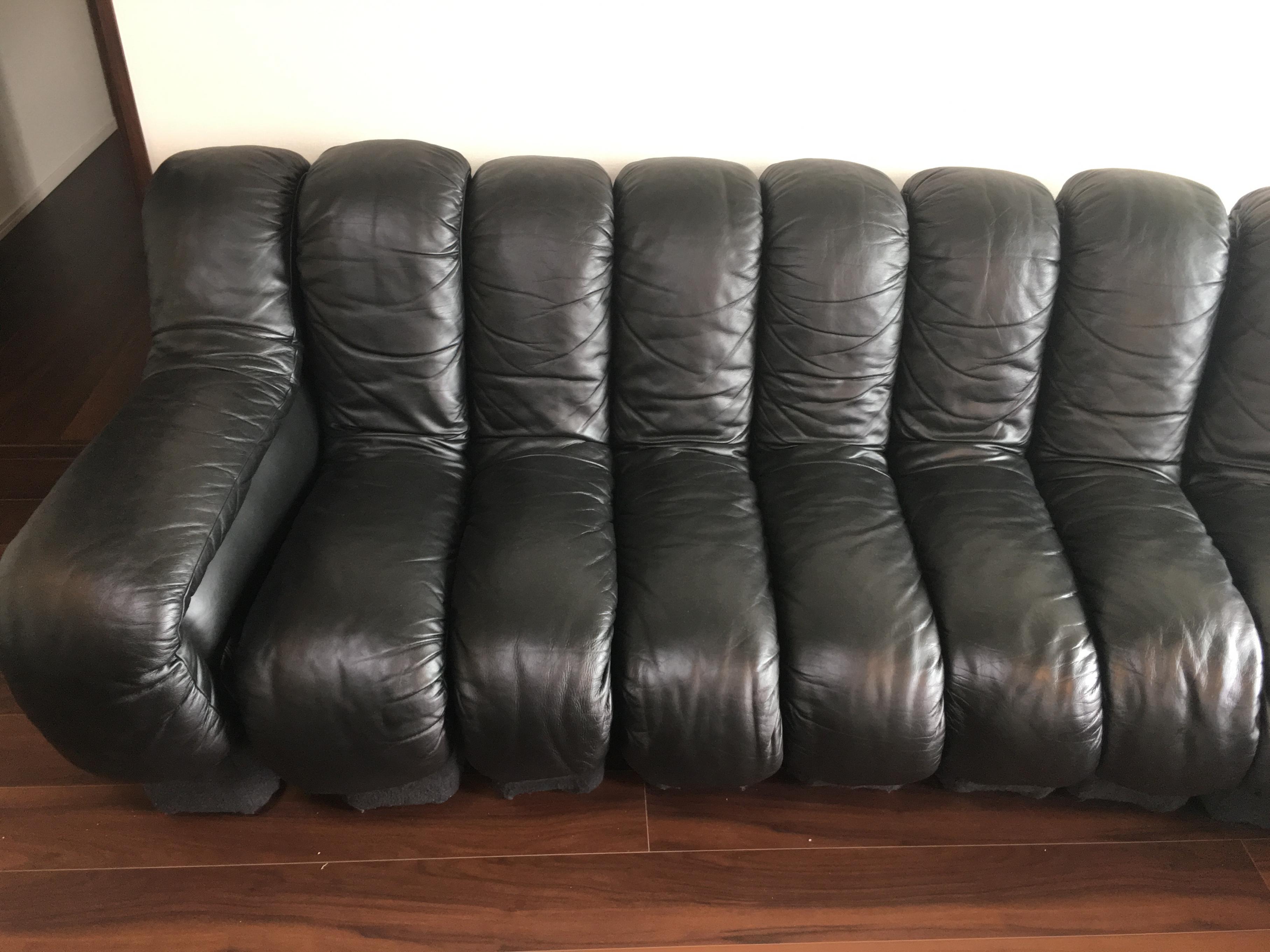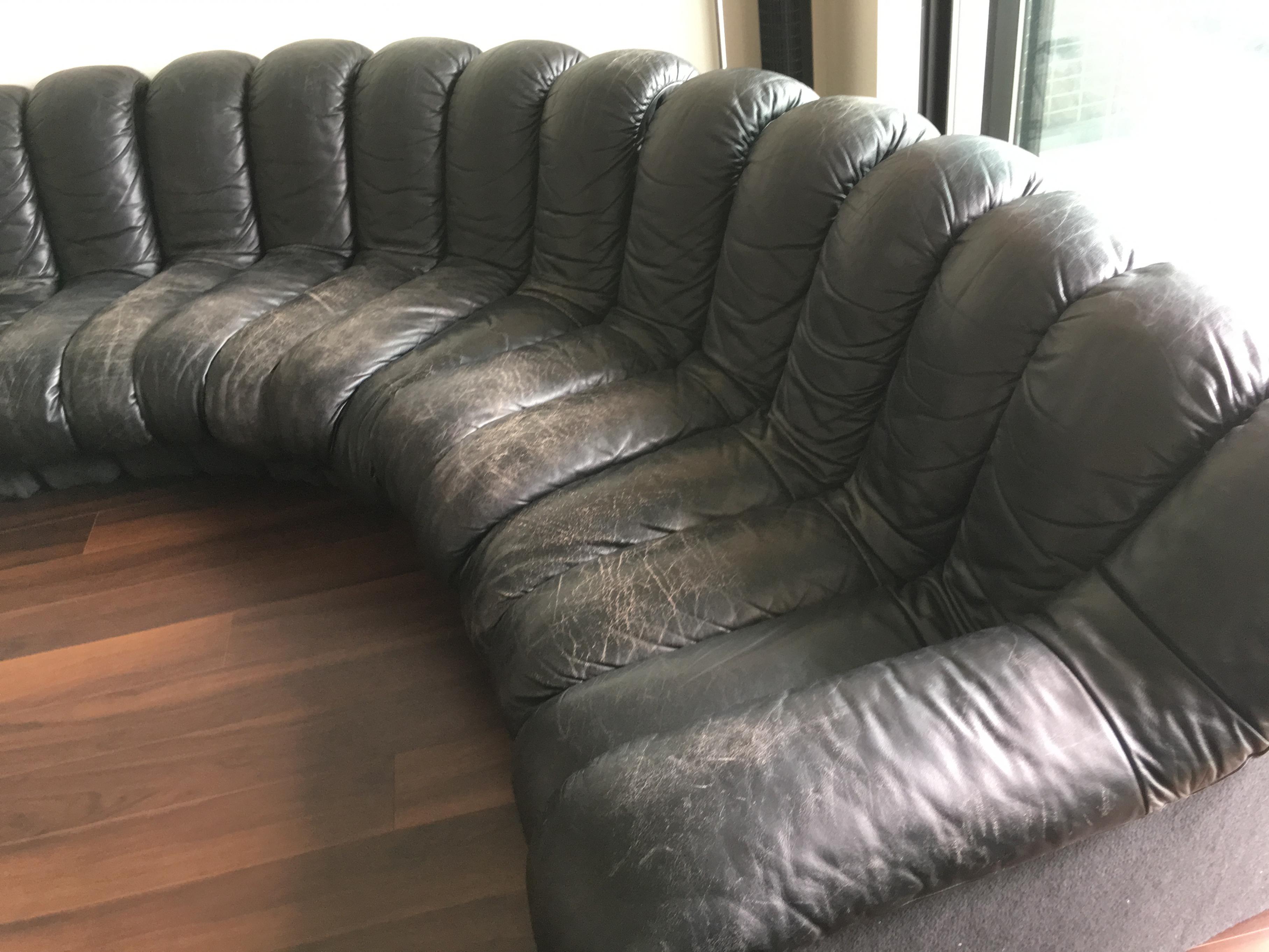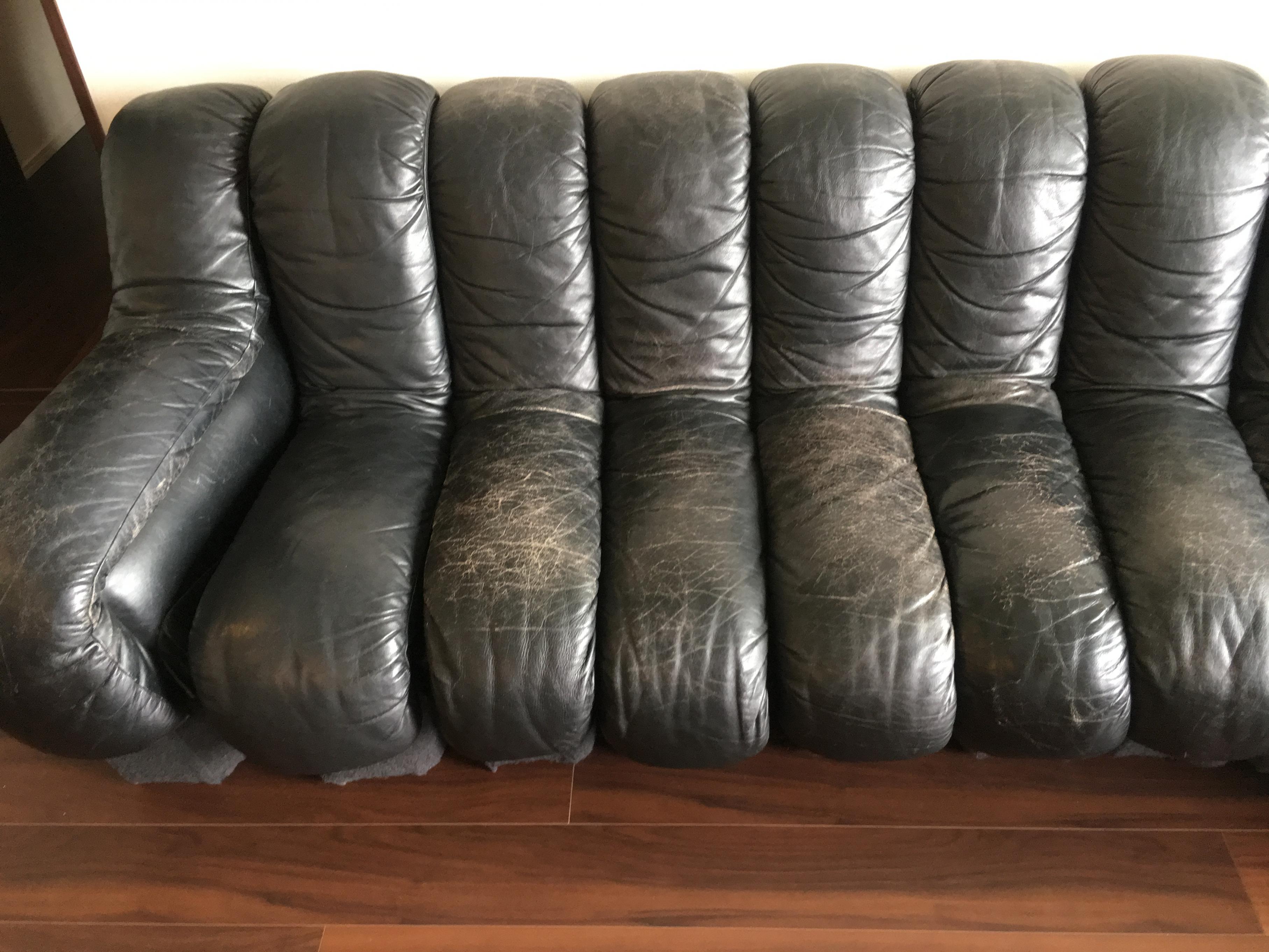 ![]() ![]() ![]() ![]() ![]() ![]() 【東京都千代田区のお客様よりご依頼】 デセデ スネークソファの座面・肘 革の劣化補修。 1連が約200mm幅のピースで構成された自在に湾曲させて配置することが出来る特徴的なソファ。ひび割れ、擦れがかなりはげしい状態でした。 全面クリーニング及び染め直し・補修にてご対応。 |