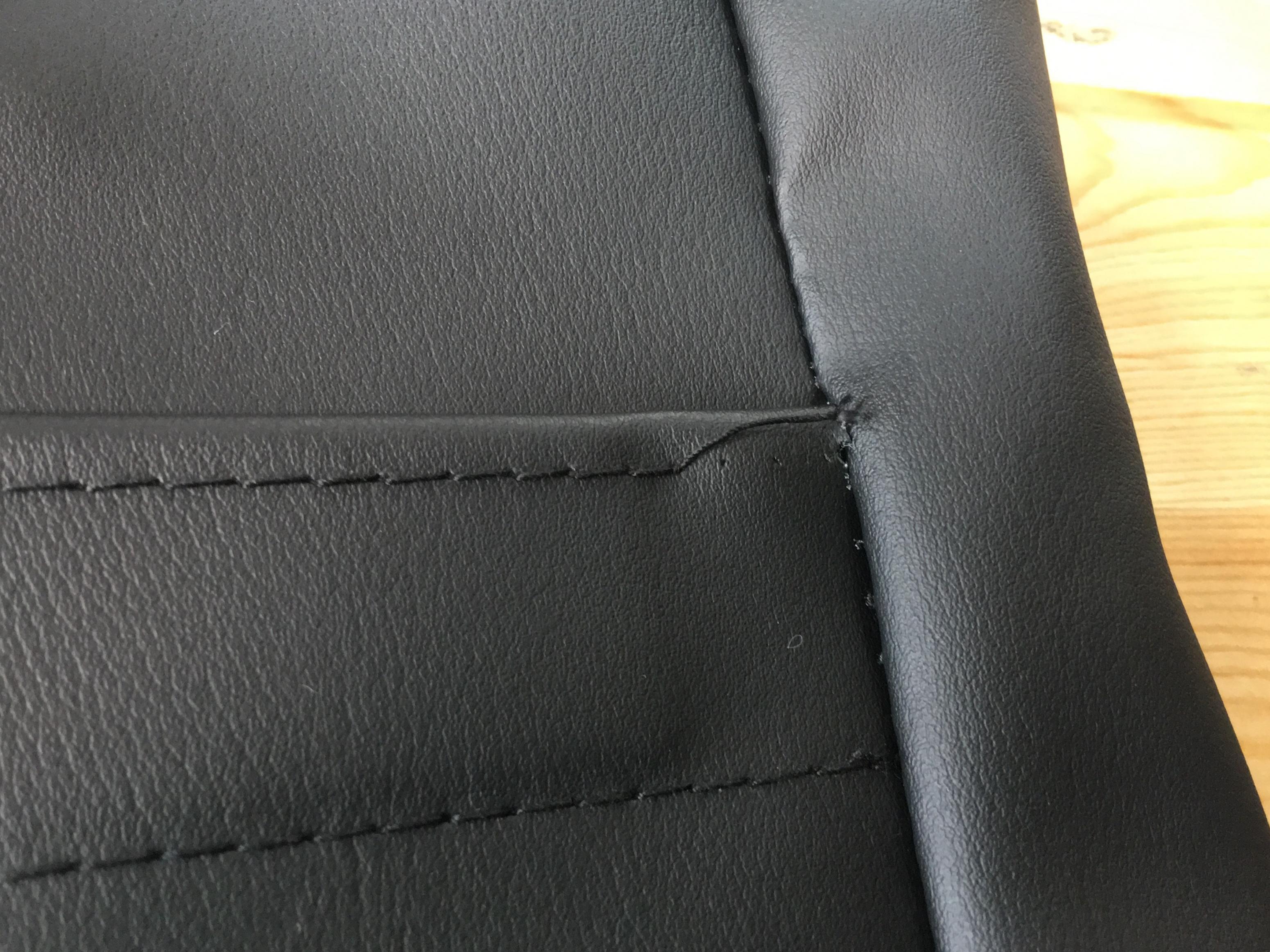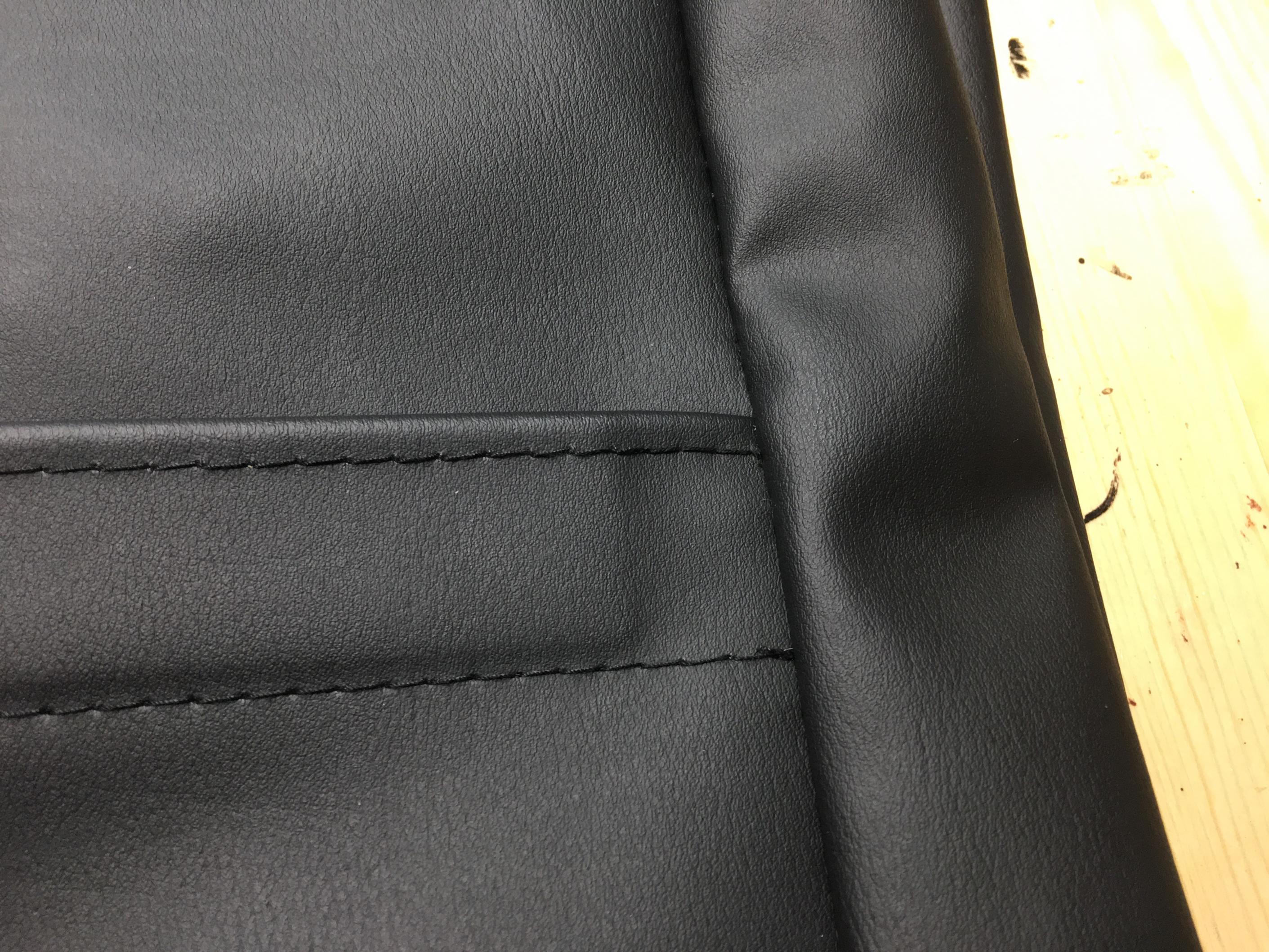 レザーシートカバーの縫製直し。 一部縫い目のほつれと破れ有り。数ミリずらして縫い直してあります。