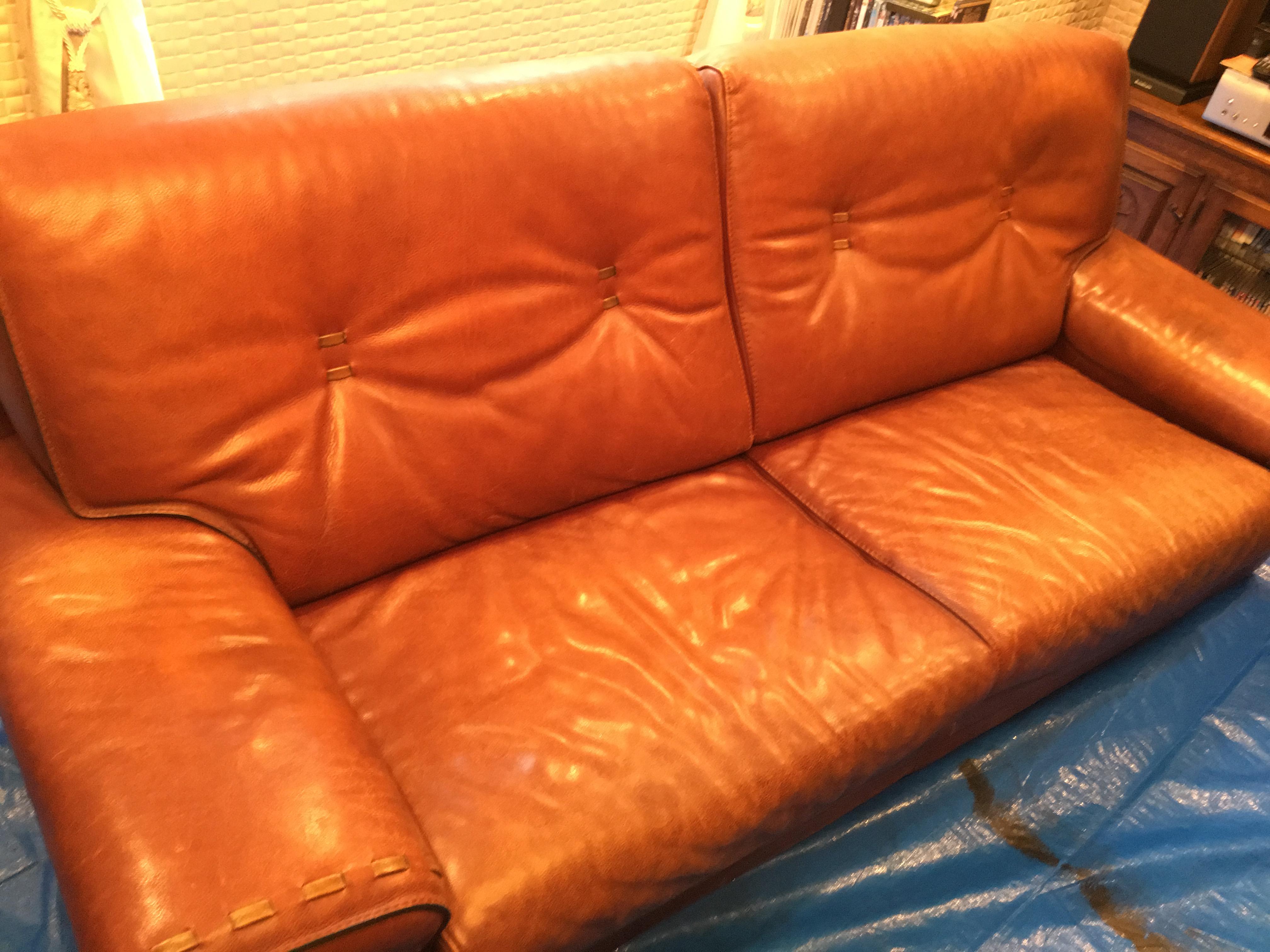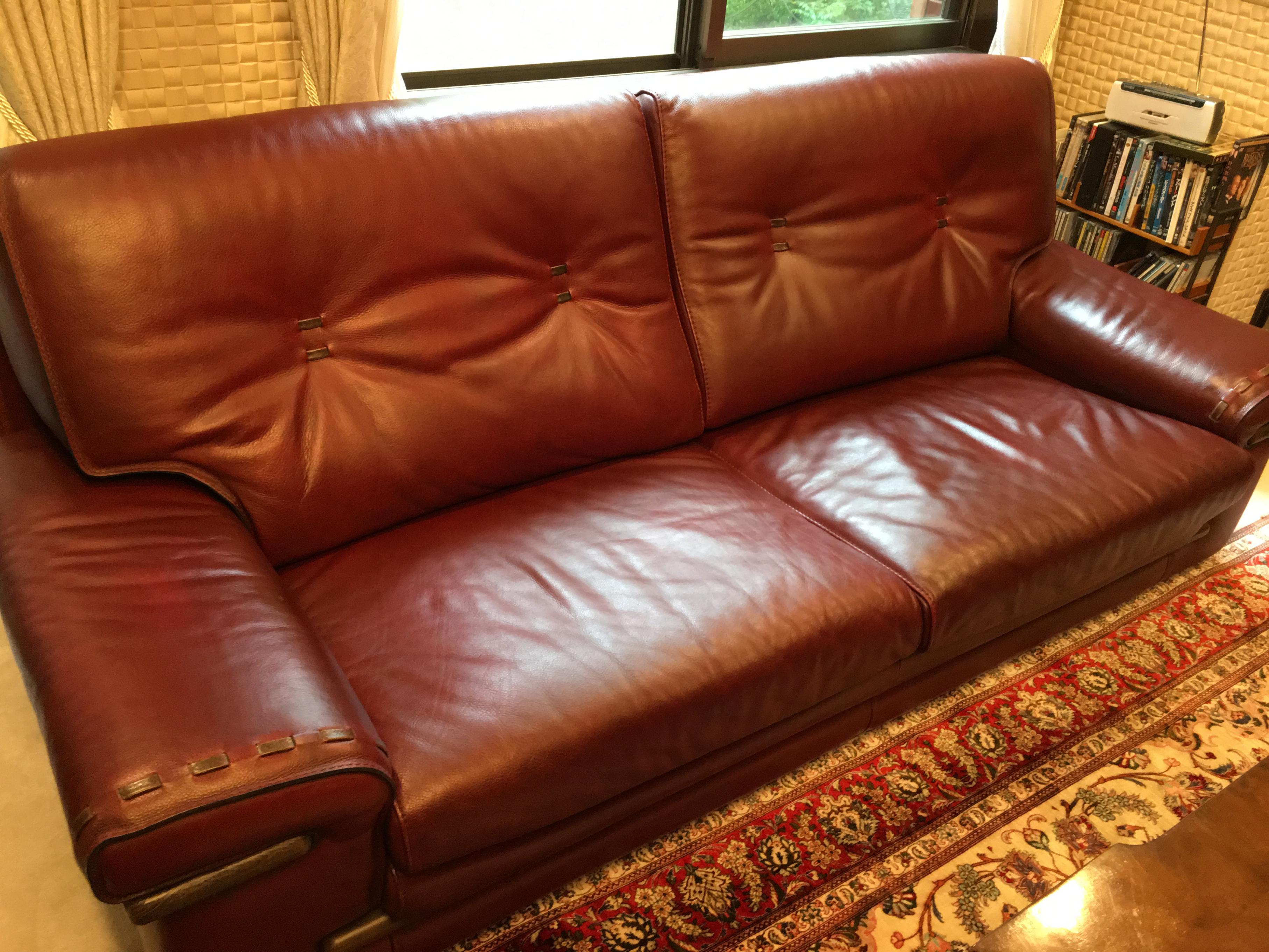 ![]() ![]() ![]() ![]() 【東京都港区のお客様よりご依頼】 イタリア製3人掛けソファ、日焼けによる退色、劣化の改善。同タイプで程度の良いサイズ違いがあり、見た目のバランスを合わせる為に修理を行ないました。手前にあるのが同タイプのソファ。 ![]() |