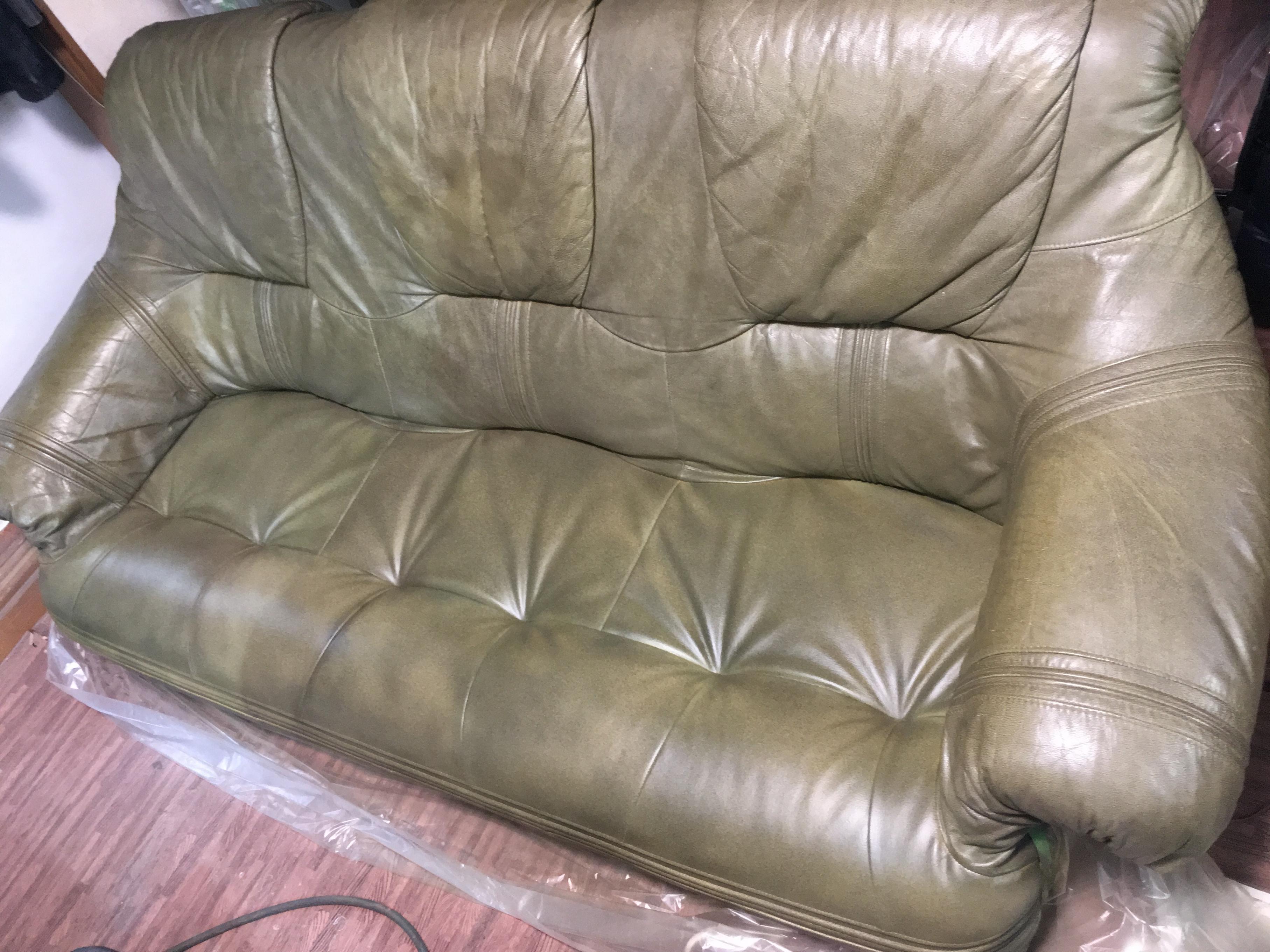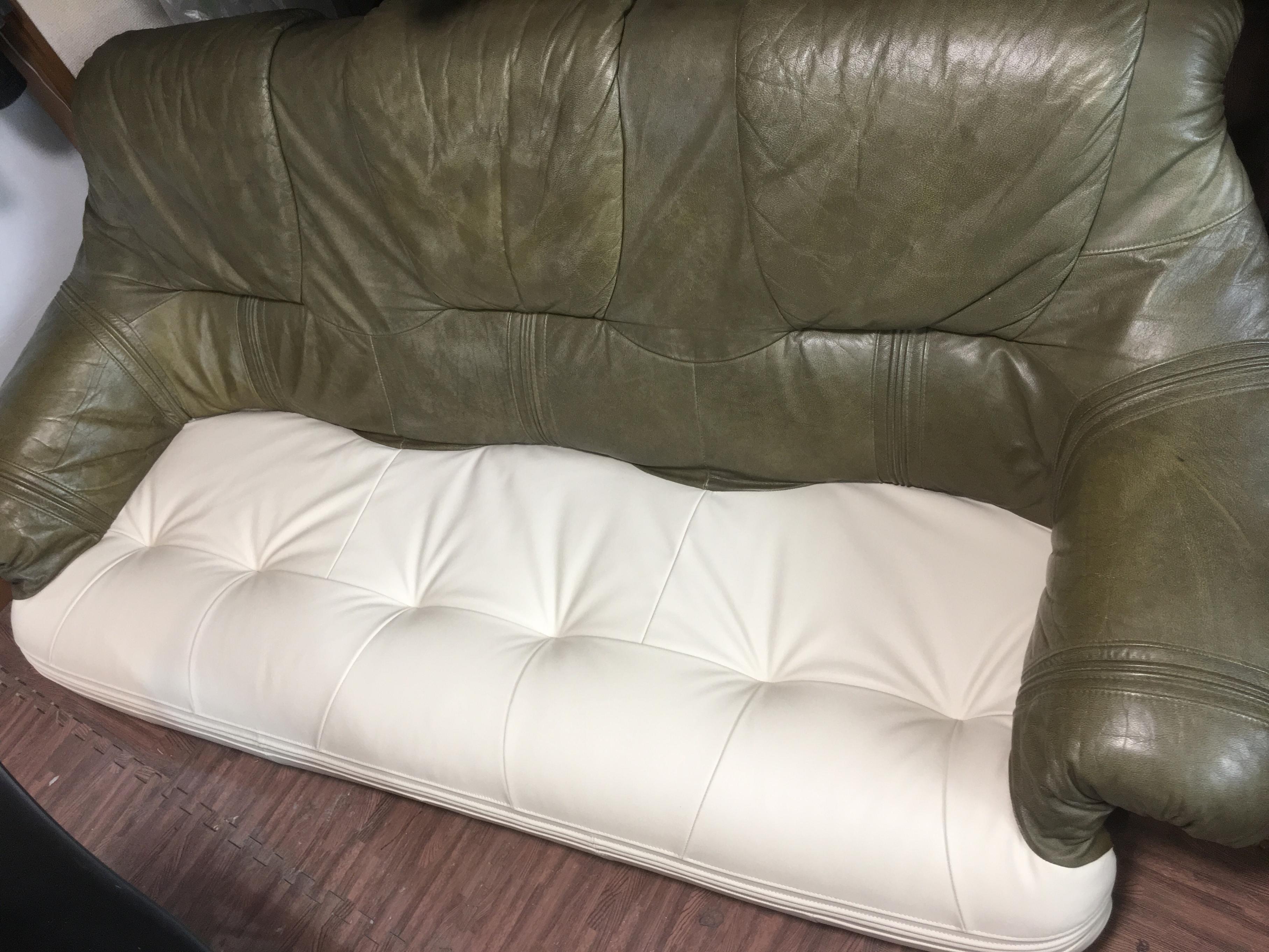 オランダ製本革ソファ座面張り替え・特殊塗装ご依頼