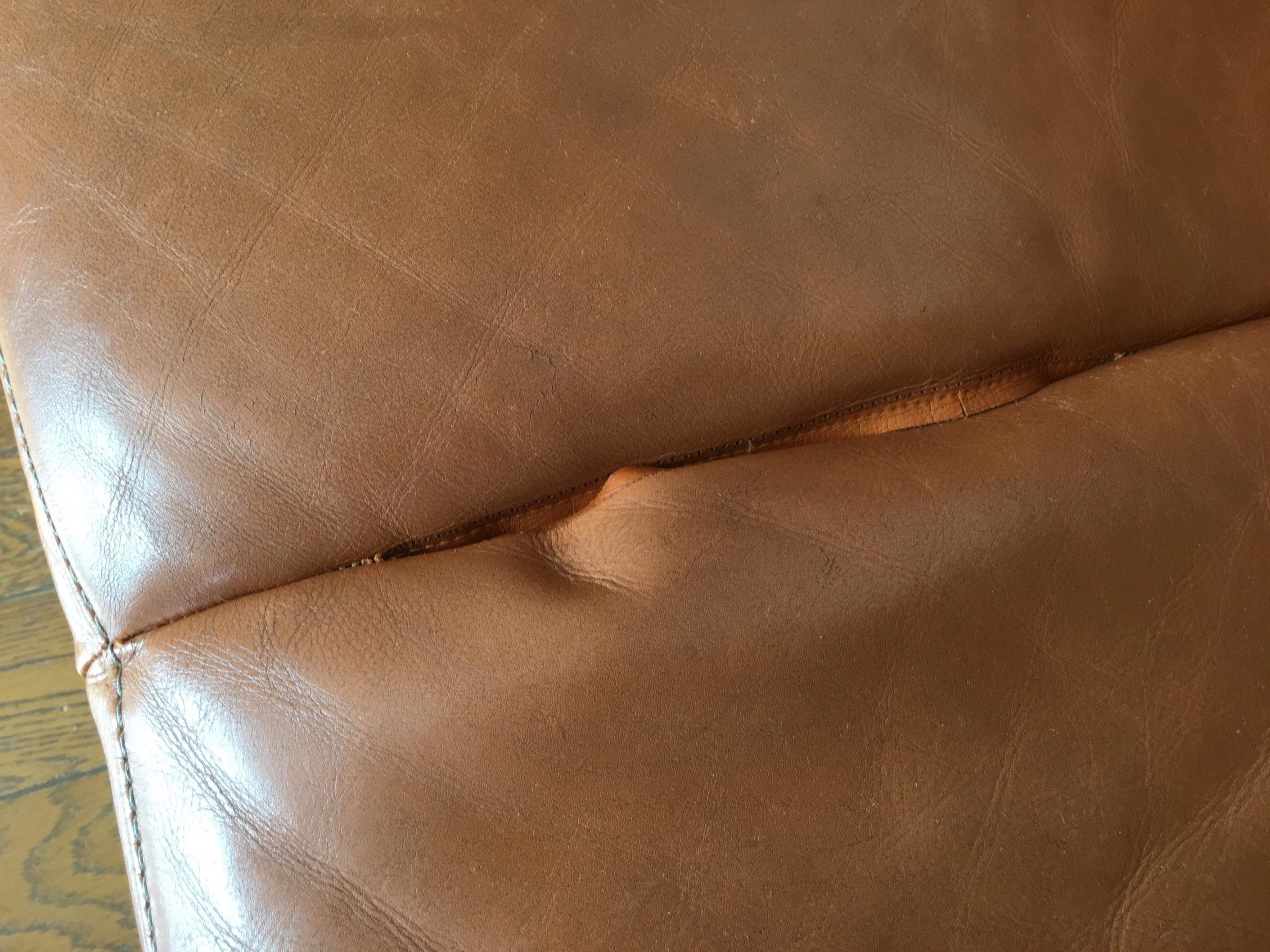 2人掛け本革ソファ 座面のほつれ直しご依頼