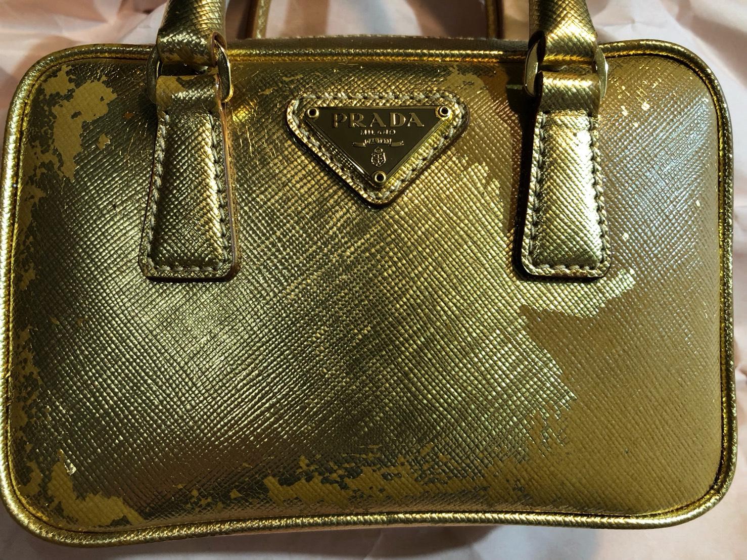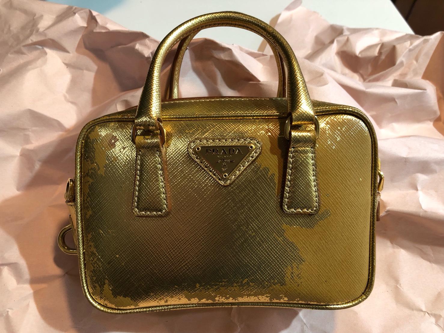 PRADA革小物入れの色替え。元はメタリックゴールド→ブラウン。