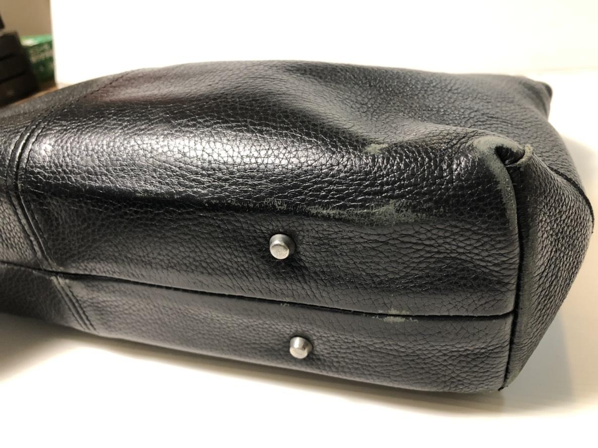 ノーブランドの黒革バッグ全体の染め直し修理。